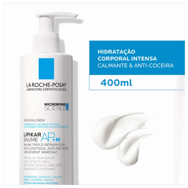 O novo Lipikar Baume AP+M reequilibra o microbioma da pele. Acalma a pele imediatamente e reduz a coceira. Com sua eficácia anti-recidiva, ela aumenta o espaçamento das crises. Nutre e restaura a barreira da pele. Formulado para bebês, crianças, adultos com pele muito seca e extremamente ressecada. Absorve rapidamente para facilitar e acelerar a aplicação diária. Acabamento não oleoso e não pegajoso.